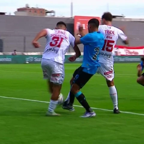 La disputa entre Jara y Rak es lícita, incluso siendo el defensor Demartini quien saca la pelota. Gran polémica que profundiza la crisis del cuestionado arbitraje argentino.
